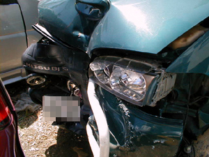 おっさんが赤点滅無視して突っ込んできて、僕は電柱に激突。