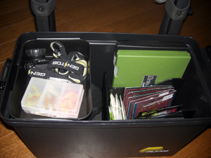 今まで釣りには持参してたけど車に置いたままにしてて使えなかった予備グッズを入れておけば、車に取りに行くのが面倒だから結局使わないってことも無くなるし、使用頻度が低い物をこれに入れておけば、パンパンになってたヒップバックもゆとりが出来て、快適に釣りが出来ると思われます♪